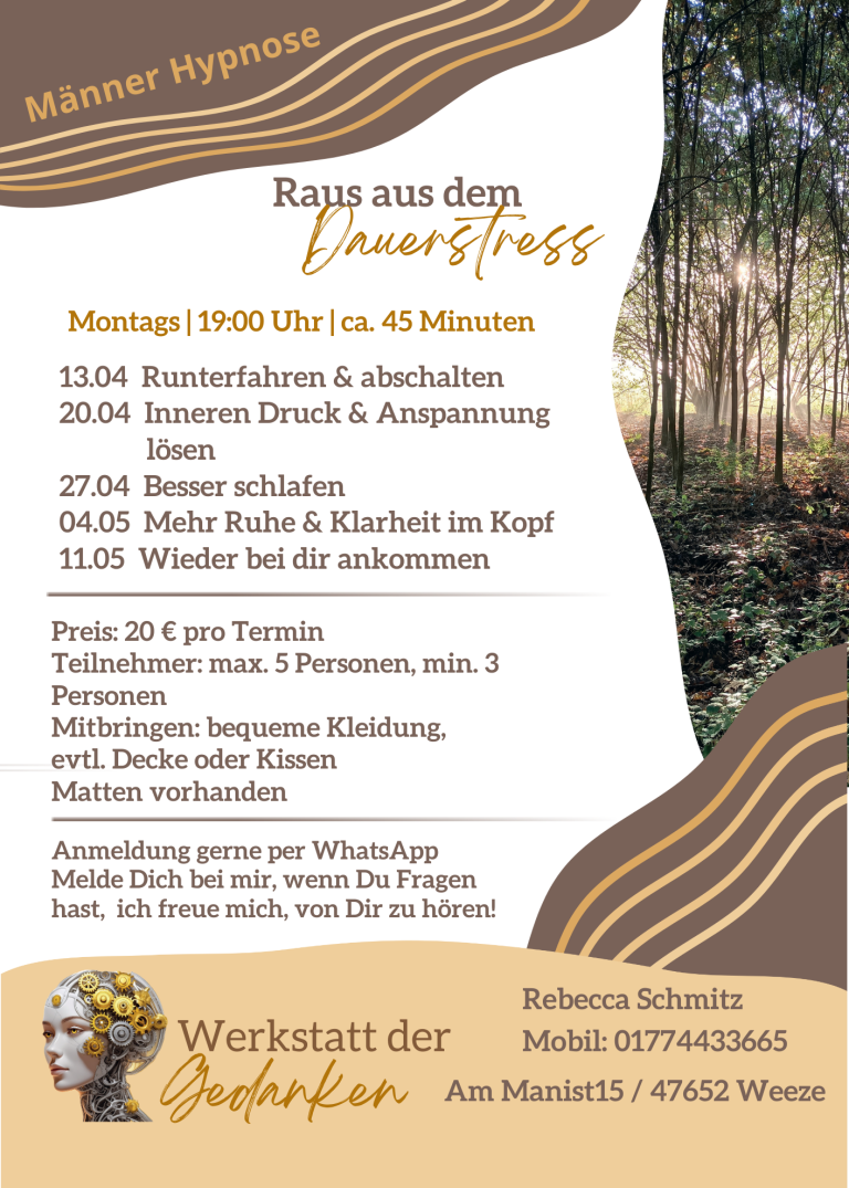 kann dieses bei Bedarf auch in einer begleitenden 1:1-Hypnose-Coaching weiter vertieft werden.
